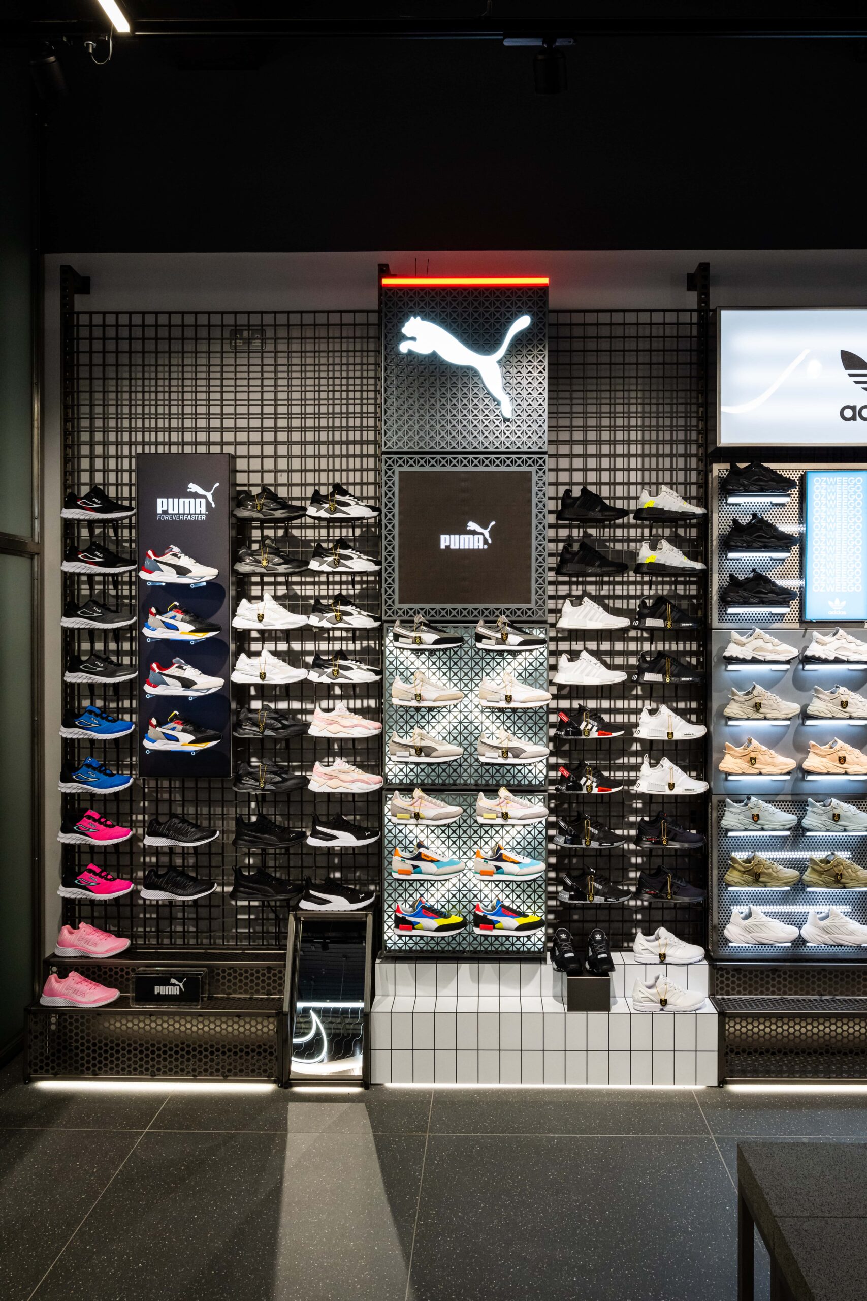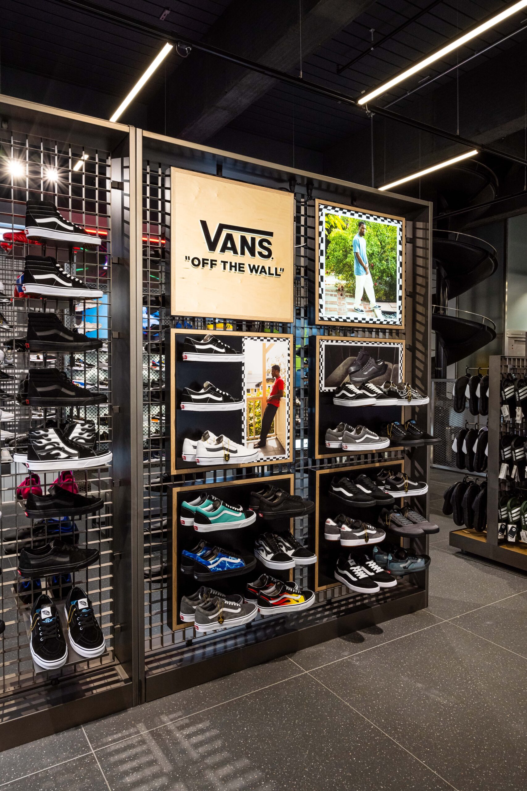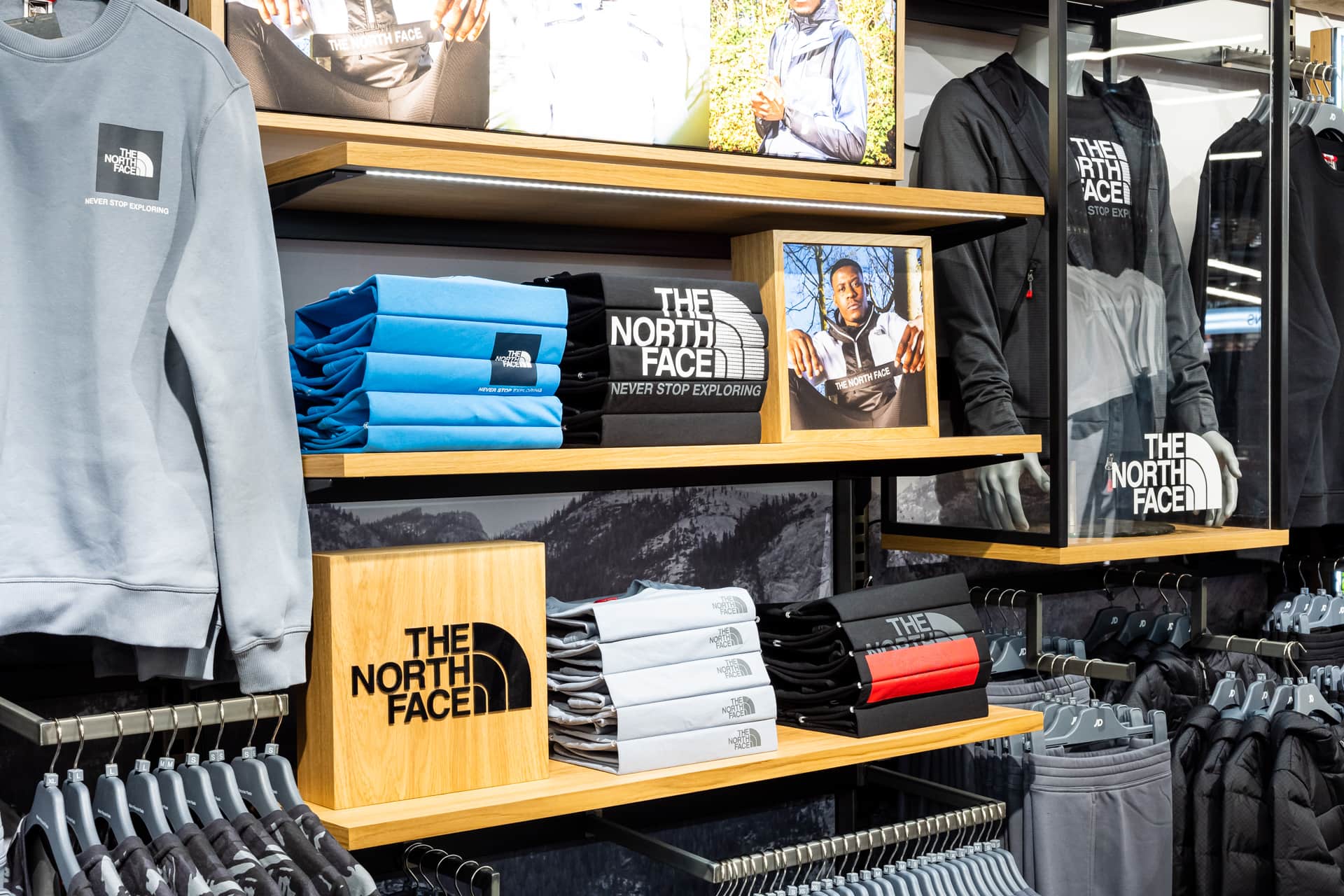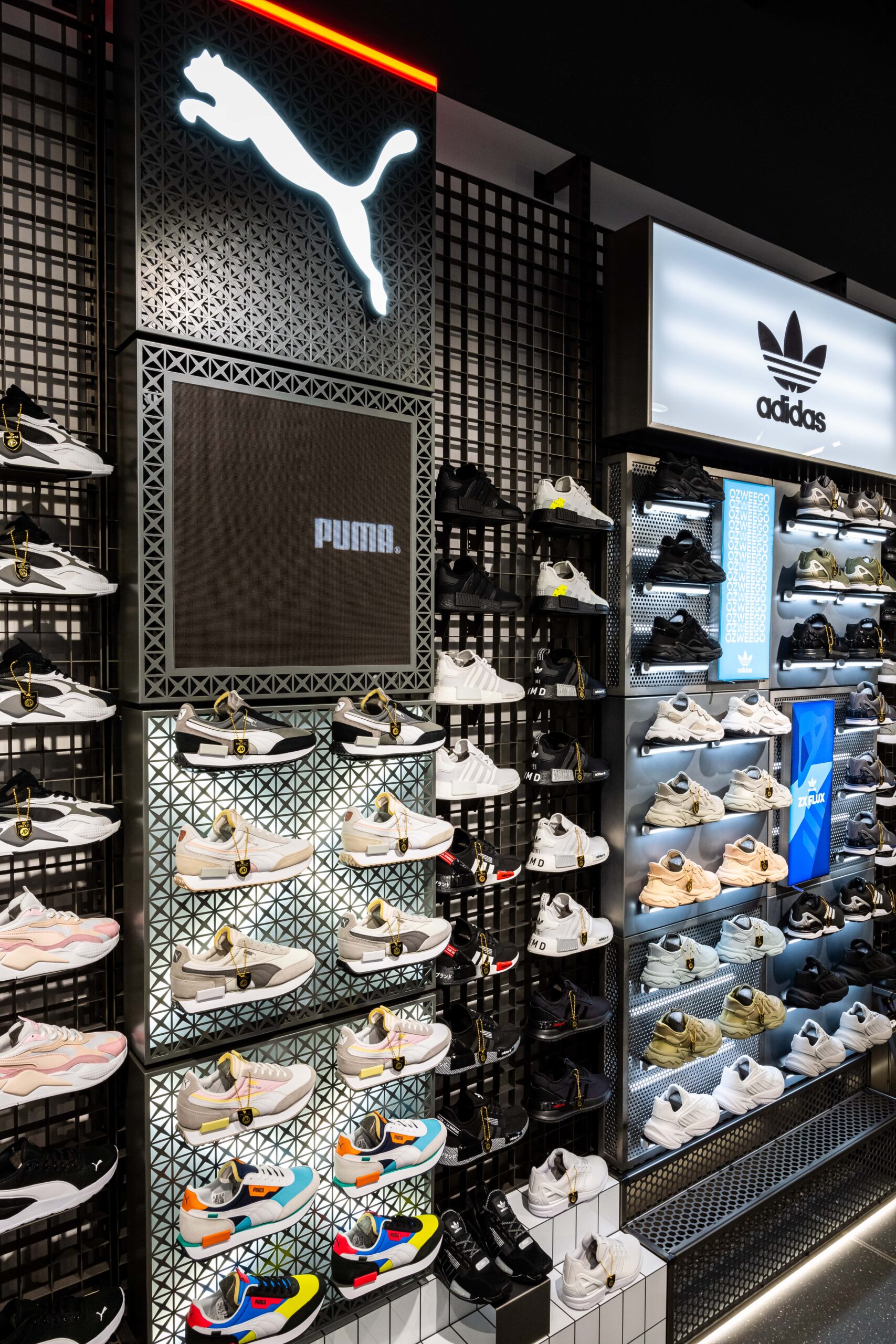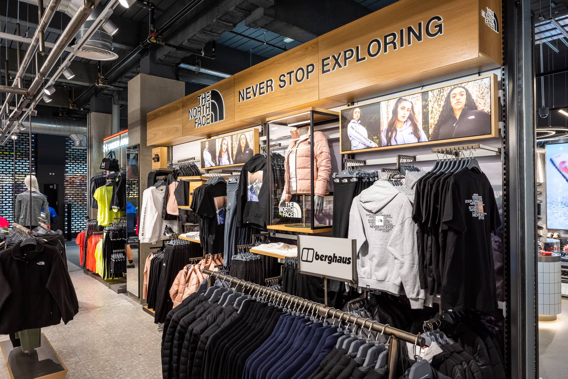 Bringing a sense of exploration to the shopping journey through its ticker-tape signage and futuristic-style screens displaying cinematic media, this ultramodern store concept is one of adventure and discovery. Making up its bold, statement design is a series of branded zones, many of which d4r had the pleasure of being involved with – whether it was designing a footwear wall, developing an apparel wall bay, or implementing a midfloor cage.