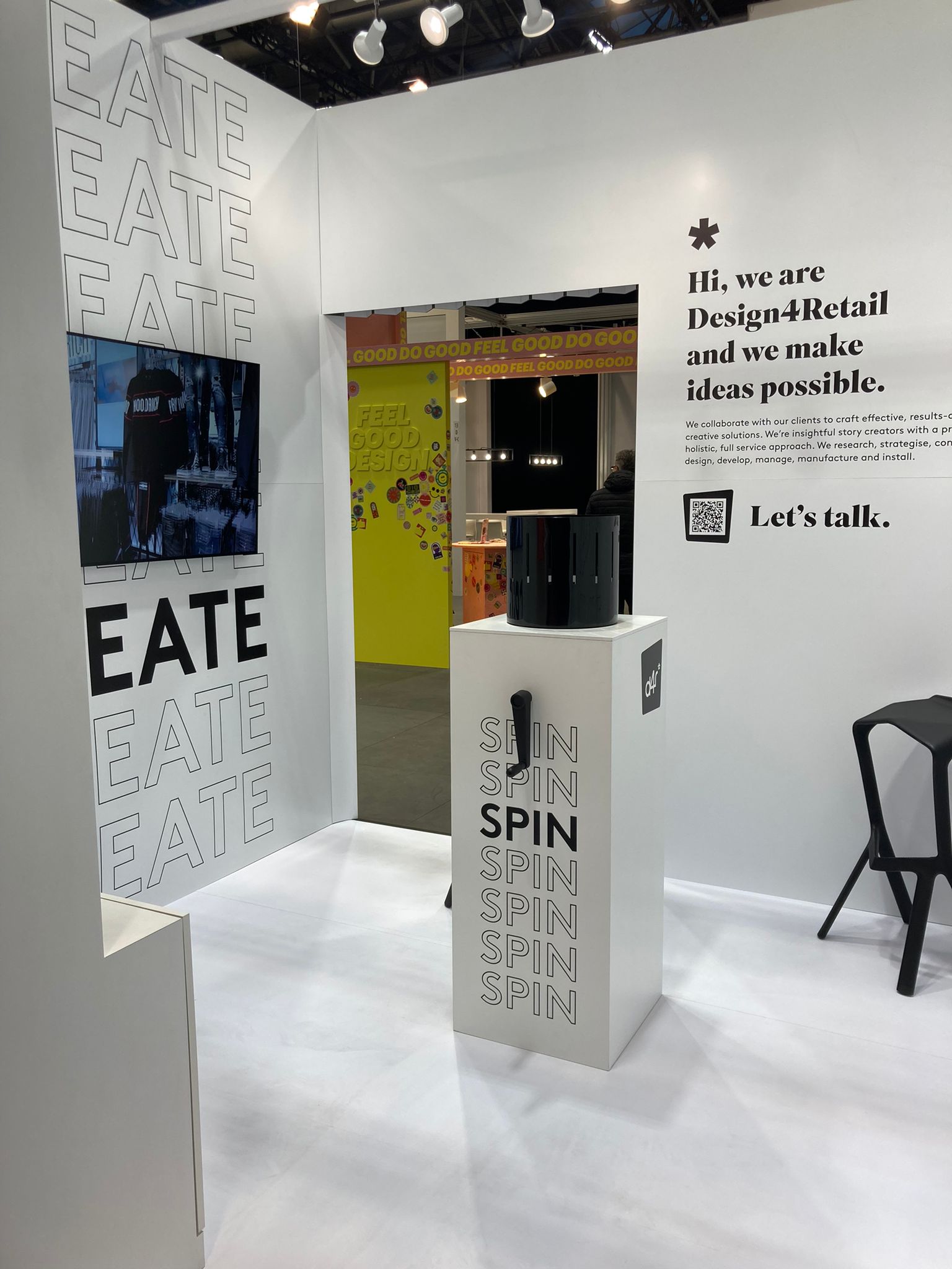 As a creative-led agency, we secured a spot in EuroShop’s Designers’ Village. With the biggest stand in this space being just 15sqm (ours was just 9sqm!), and in a location overflowing with designers and industry creatives, we knew we had to come up with a design that would make a huge impact in a small space!