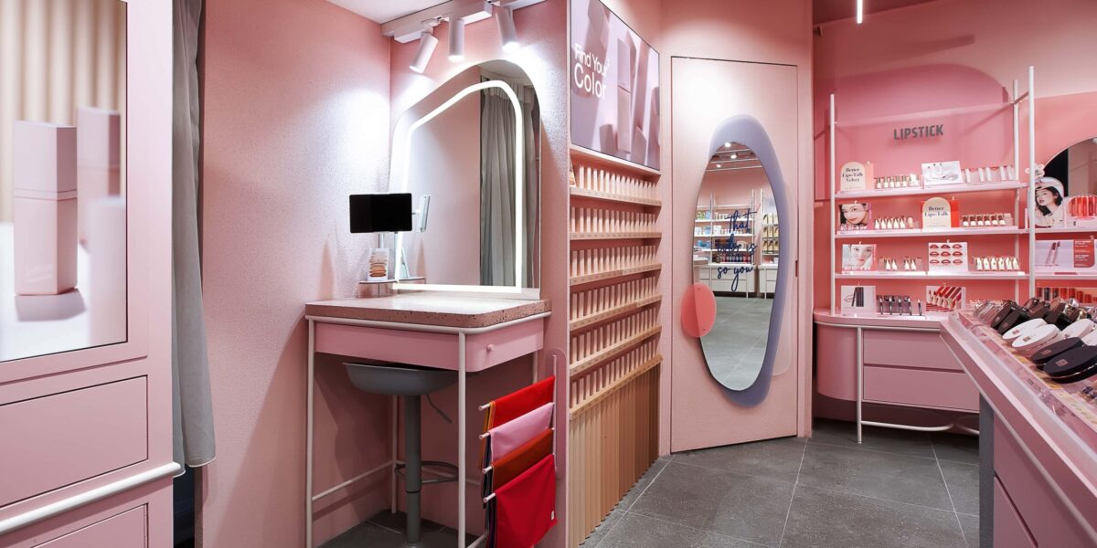 The new store concept reinvents this and moves away from the static use of a single tone and creates a dynamic environment with a multitude of textures and shades of pink that reflect and amplify the brand’s core colour, differentiating from competitors in the landscape.