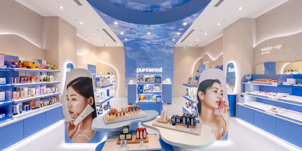 At Design4Retail, we were delighted to partner with pureseoul to develop a new store design concept for their exciting retail expansion journey, which began with their flagship location at Westfield, White City. Our core mission was to establish pureseoul as the definitive UK destination for K-Beauty expertise, celebrating an extensive range of brands in an environment that was both inviting and accessible. Our process was founded on a robust brand strategy that centred on community, inclusivity, and inspiring customers. We translated these pillars into the “Playful Sky-Scape” concept—a serene and welcoming space for both K-Beauty fans and curious newcomers.