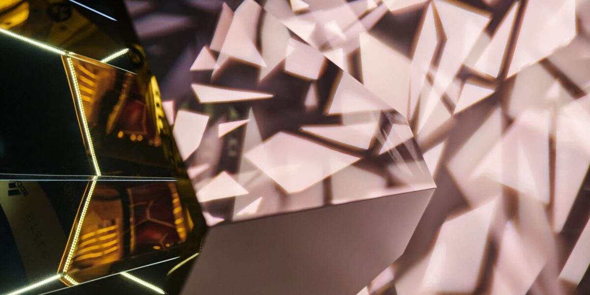 Shard-like projections paired with soft, ambient lighting created an ethereal sense of movement, allowing the golden Ultraboost shoe to command the spotlight it so richly deserves.