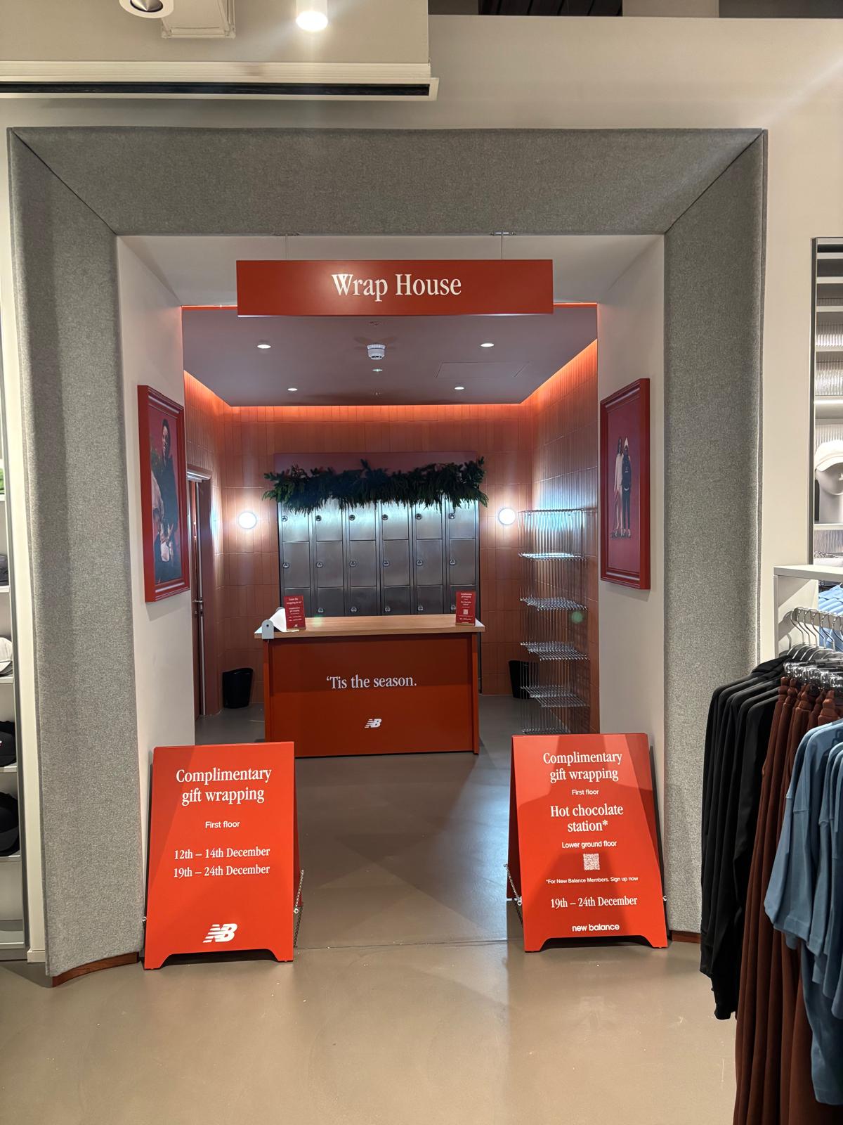 To enhance the customer experience, we helped develop exclusive activations. We tested various blends to select the perfect hot cocoa, which was offered in a dedicated stand located in the downstairs āMade in UKā room, a London-specific, basement-level space. Furthermore, a wrapping station was made available to all customers, offering complimentary gift wrapping from the New Balance team. We also assisted in designing the exclusive wrapping paper, adding a thoughtful, sentimental offering to their loyal customers.